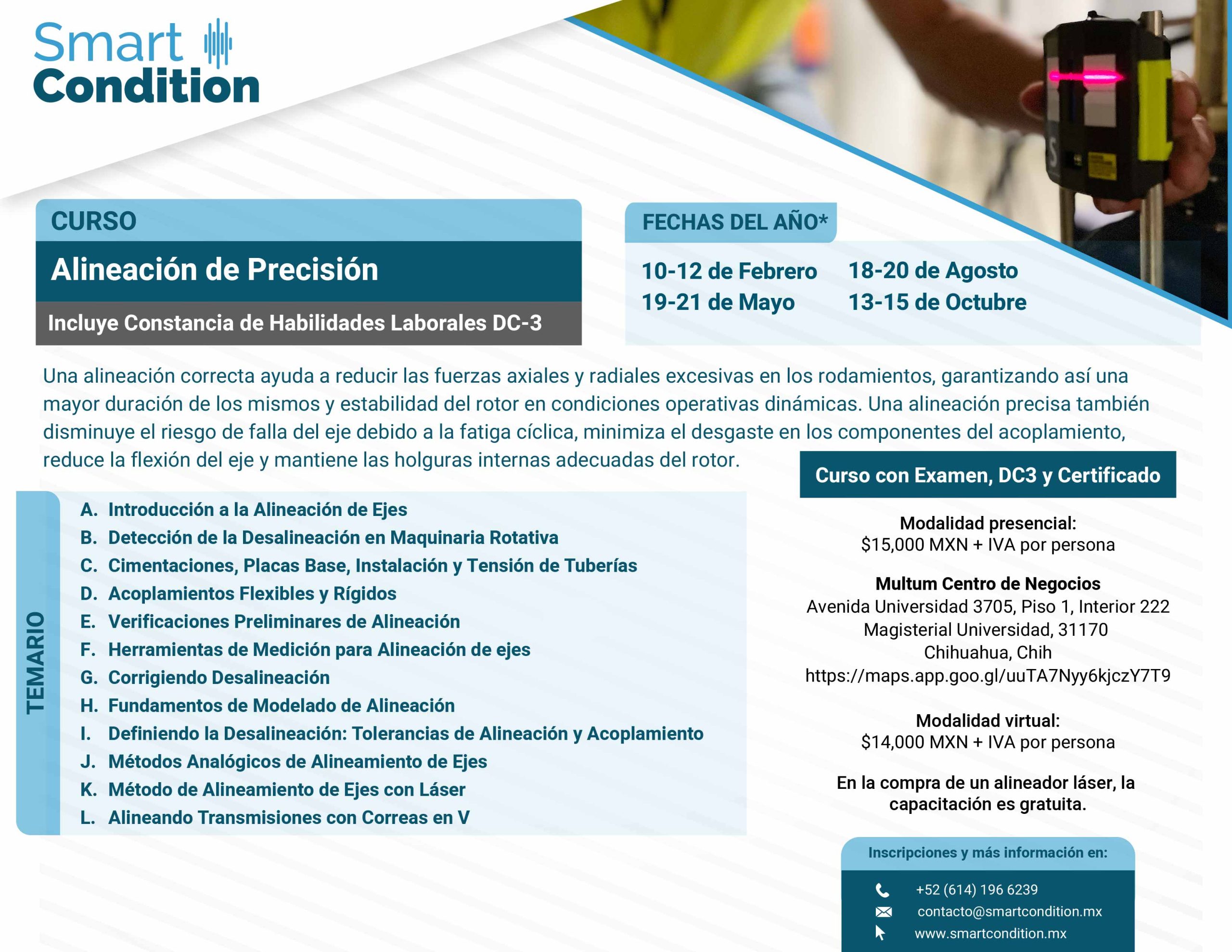 Al finalizar el curso, los participantes demostrarán y aplicarán los conocimientos de los distintos métodos de alineamiento de maquinaria para ejes horizontales y reconocerán la importancia de su correcta aplicación en la industria.